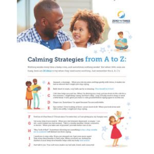 Nothing works every time a baby cries, and sometimes nothing works! Our Calming Strategies from A to Z Poster and Handout provides 26 different ideas to try when little ones become fussy and need soothing.Caring For Infants & Toddlers In Groups