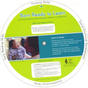 Caregivers need easy-to-use and practical resources to feel empowered in their crucial roles with their little ones. While biting is one of the most common—and most upsetting—toddler behaviors caregivers experience, our Biting Wheel is designed to help parents and child care providers understand how to respond to biting and how to prevent biting in the future. This new resource wheel comes in sets of 10 and is double-sided with English and Spanish versions.Born Ready To Learn 0-12 Months Wheels