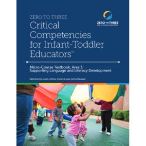 The Micro-Course Textbook for Area 3: Supporting Language and Literacy Development supports faculty and their students in understanding and implementing critical interactions with infants and toddlers that support and nurture their language and literacy development and learning. Each chapter begins with a reflection followed by a focus on child development and the educator’s role in applying the Critical Competencies, additional considerations for supporting high-needs populations and multi-language learners, and concludes with reflection on the chapter content and application.